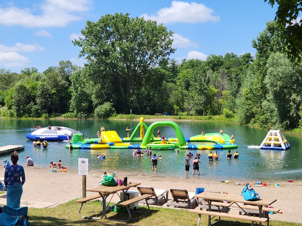 Spend the day swimming in our spring-fed pond, relaxing on the beach, and enjoying our exciting new Splash Landings Inflatable waterpark obstacle course. Fun for all ages. It’s the perfect way to enjoy the outdoors here in the heart of Southern Ontario..